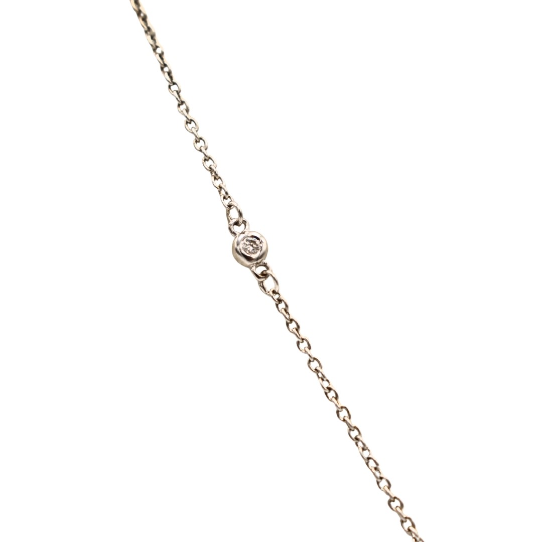 Ce magnifique collier est orné d'une délicate chaîne de 42 cm, confectionnée en luxueux Or blanc 750/1000ème (or blanc 18 carats). L'or blanc scintillant offre le support parfait pour un Diamant éblouissant de 0,25 carat. Nous avons choisi ce diamant particulier pour sa brillance et son feu exceptionnels – il capte véritablement la lumière à chaque mouvement.