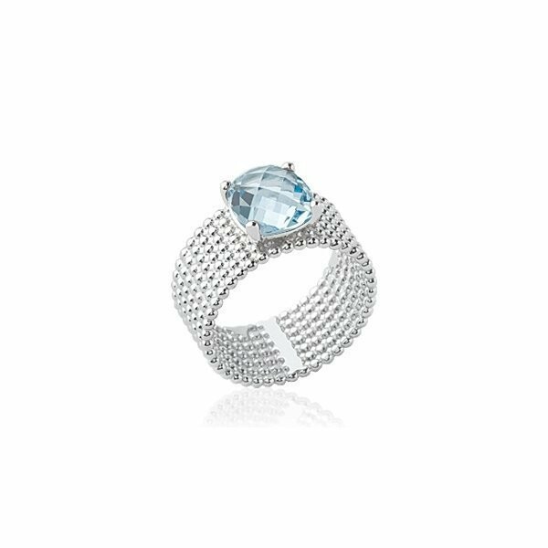 Bague en argent rhodié et pierre synthétique