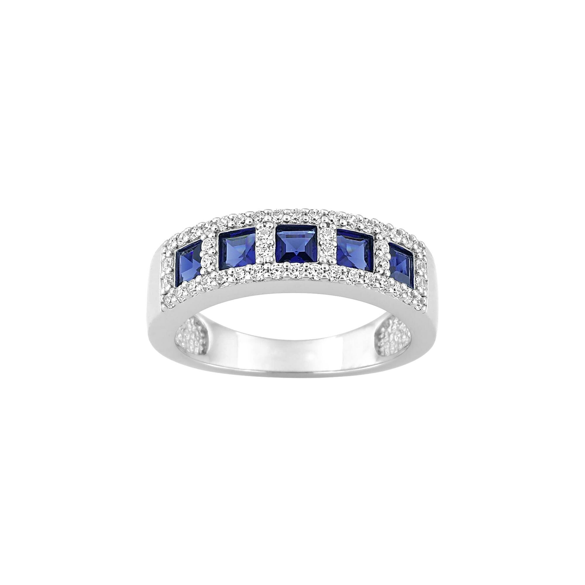Bague en argent rhodié et oxyde de zirconium bleu et blanc