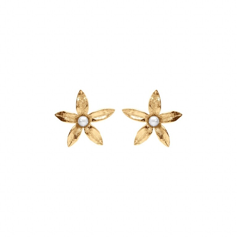 Découvrez le charme enchanteur de ces Boucles d'oreilles argent doré fleur et perle blanche.