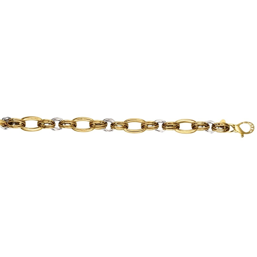 Ce bracelet en or 18K bicolore associe harmonieusement la maille lentille et la maille torçade, offrant un design sophistiqué et intemporel. Avec un poids de 9,95 grammes et une longueur de 19 cm, il présente un équilibre parfait entre confort et élégance. Le fermoir mousqueton garantit une fermeture sécurisée tout en facilitant son usage quotidien.