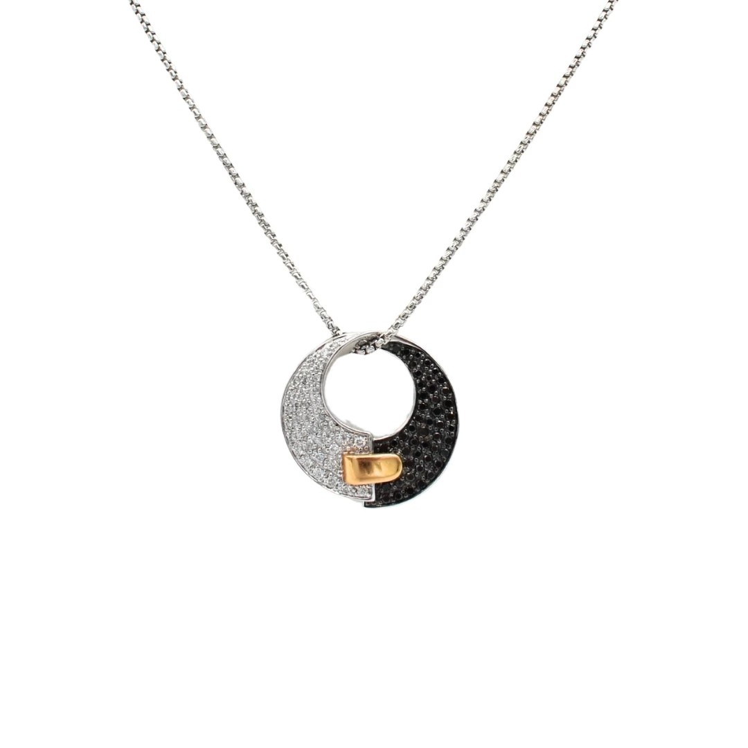 Ce collier captivant présente un jeu délicat d'or 18 carats, disponible en or blanc éclatant (750/1000ème) et en or rose romantique (750/1000ème). Nous avons soigneusement sélectionné de brillants diamants pour orner cette pièce, totalisant 0,64 carat. Pour ceux qui recherchent quelque chose d'un peu différent, nous incorporons également des diamants noirs saisissants pour une touche supplémentaire de sophistication moderne.